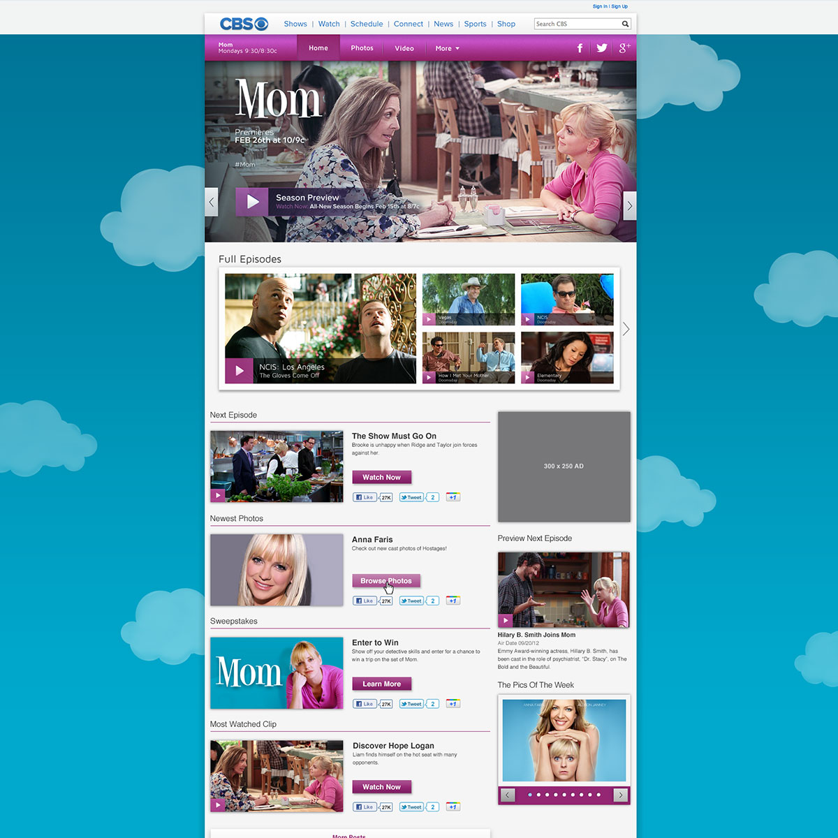 Design and Production for CBS's Mom. Design of digital upfront promotional campaigns, including key art and TV screens. Full CBS page take-over.