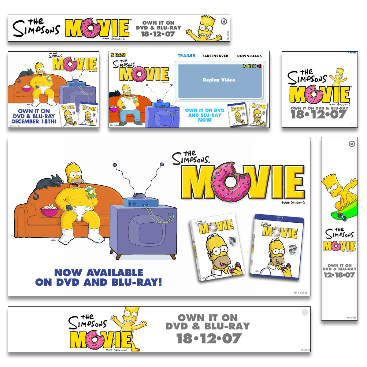 Design and Production for Fox's TThe Simpsons Movie. Flash ActionScript, HTML animated banners. Design of traditional and digital promotional campaigns. Full page take-over and micro-sites.